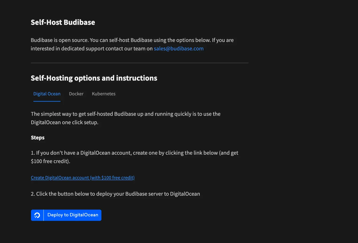 Businesses of all sizes choose to self-host their Budibase tools. Self-hosting offers unrivaled security, flexibility, and functionality. Host your open-source IT tools however you like, wherever you like. Use Kubernetes, Docker, Docker Compose, Digital Ocean, and more to deploy Budibase tools to your own infrastructure.